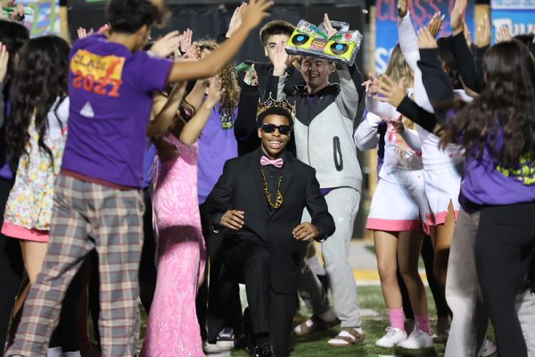 The seniors finished the Homecoming Night Rally by performing their final Homecoming Skit and portrayed the upcoming shift into adulthood with “Friends.” Accompanied by a pink inflatable couch, the seniors exuded joy and danced tirelessly.