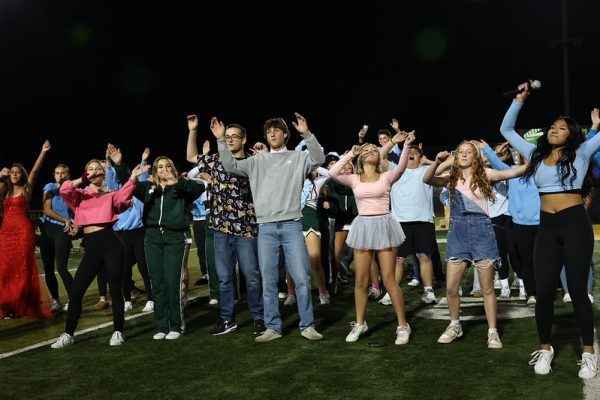 The seniors finished the Homecoming Night Rally by performing their final Homecoming Skit and portrayed the upcoming shift into adulthood with “Friends.” Accompanied by a pink inflatable couch, the seniors exuded joy and danced tirelessly.